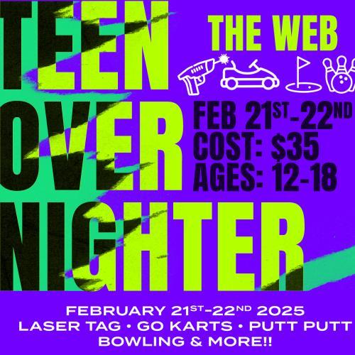 📅 Feb 21-22 | ⏰ 9 PM - 7 AM 📍 Meet at Mission Baptist Church at 9 PM Friday 💰 $35 (includes food!) | Ages 12-18
